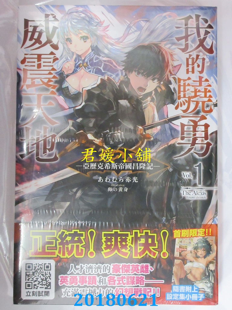 本店刊登的圖片都是第一時間出版日當天所拍,讀者若要首刷書,請在出刊時就來購買!!日久或售完就無庫存,要請書商補書,書商沒有幫忙挑首刷書這樣的服務,都是按書名送來,故不保證有首刷!!除非商品標題有特別寫是首刷版,請不要以非首刷或與圖片不同,來退貨退款,恕不受理!!購買前請張大眼睛看清楚,或旺旺詢問客服,以避免日後糾紛!!謝謝!! 【內容簡介】 我的驍勇威震天地(01)亞歷克希斯帝國昌隆記(限定版) 書重預估 500 公克