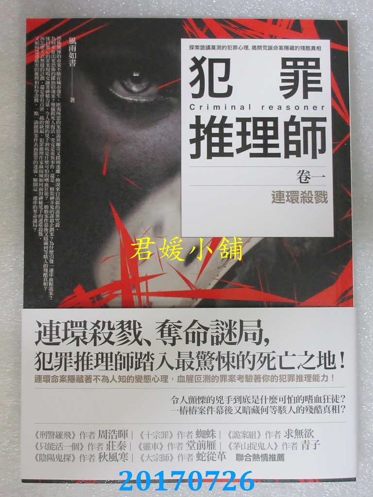 【內容簡介】 犯罪推理師 卷一:連環殺戮作者: 風雨如書出版社:普天出版社 出版日期:2017/07/10語言:繁體中文 書重 420 公克