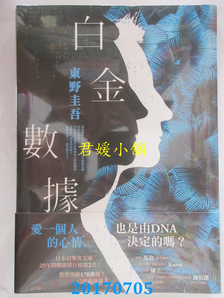 本店刊登的圖片都是第一時間出版日當天所拍,讀者若要首刷書,請在出刊時就來購買!!日久或售完就無庫存,要請書商補書,書商沒有幫忙挑首刷書這樣的服務,都是按書名送來,故不保證有首刷!!除非商品標題有特別寫是首刷版,請不要以非首刷或與圖片不同,來退貨退款,恕不受理!!購買前請張大眼睛看清楚,或旺旺詢問客服,以避免日後糾紛!!謝謝!! 【內容簡介】 白金數據作者: 東野圭吾譯者:王蘊潔出版社:皇冠出版日期:2017/07/03語言:繁體中文