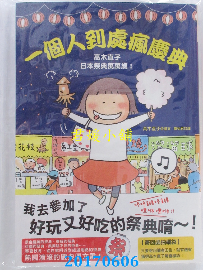 本店刊登的圖片都是第一時間出版日當天所拍,讀者若要首刷書,請在出刊時就來購買!!日久或售完就無庫存,要請書商補書,書商沒有幫忙挑首刷書這樣的服務,都是按書名送來,故不保證有首刷!!除非商品標題有特別寫是首刷版,請不要以非首刷或與圖片不同,來退貨退款,恕不受理!!購買前請張大眼睛看清楚,或旺旺詢問客服,以避免日後糾紛!!謝謝!! 【內容簡介】 一個人到處瘋慶典:高木直子日本祭典萬萬歲作者: 高木直子譯者:陳怡君出版社:大田出版日期:2017/06/01語言:繁體中文