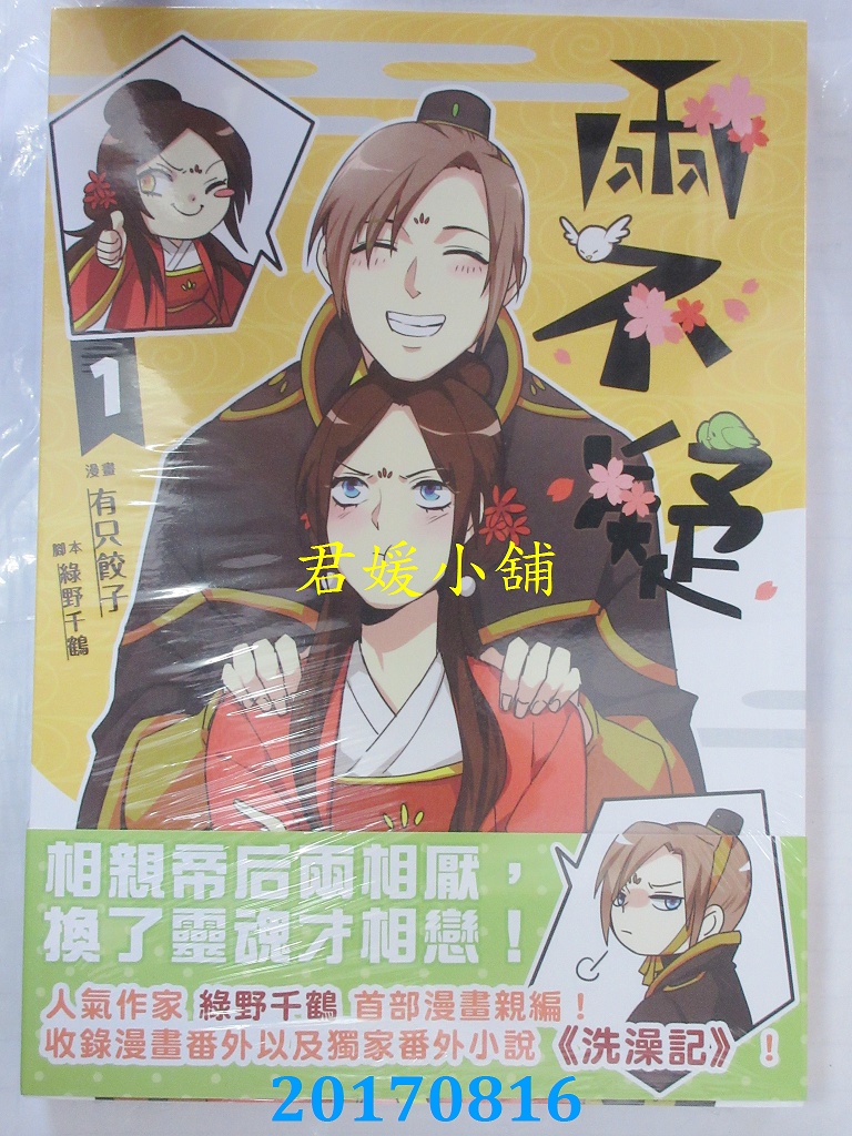 本店刊登的圖片都是第一時間出版日當天所拍,讀者若要首刷書,請在出刊時就來購買!!日久或售完就無庫存,要請書商補書,書商沒有幫忙挑首刷書這樣的服務,都是按書名送來,故不保證有首刷!!除非商品標題有特別寫是首刷版,請不要以非首刷或與圖片不同,來退貨退款,恕不受理!!購買前請張大眼睛看清楚,或旺旺詢問客服,以避免日後糾紛!!謝謝!! 【內容簡介】 兩不疑 漫畫 1(彩漫+全新番外)作者: 綠野千鶴/原作, 有只餃子/漫畫出版社:威向出版日期:2017/08/16語言:繁體中文