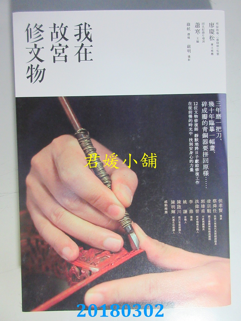 本店刊登的圖片都是第一時間出版日當天所拍,讀者若要首刷書,請在出刊時就來購買!!日久或售完就無庫存,要請書商補書,書商沒有幫忙挑首刷書這樣的服務,都是按書名送來,故不保證有首刷!!除非商品標題有特別寫是首刷版,請不要以非首刷或與圖片不同,來退貨退款,恕不受理!!購買前請張大眼睛看清楚,或旺旺詢問客服,以避免日後糾紛!!謝謝!! 【內容簡介】 我在故宮修文物 書重 520 公克