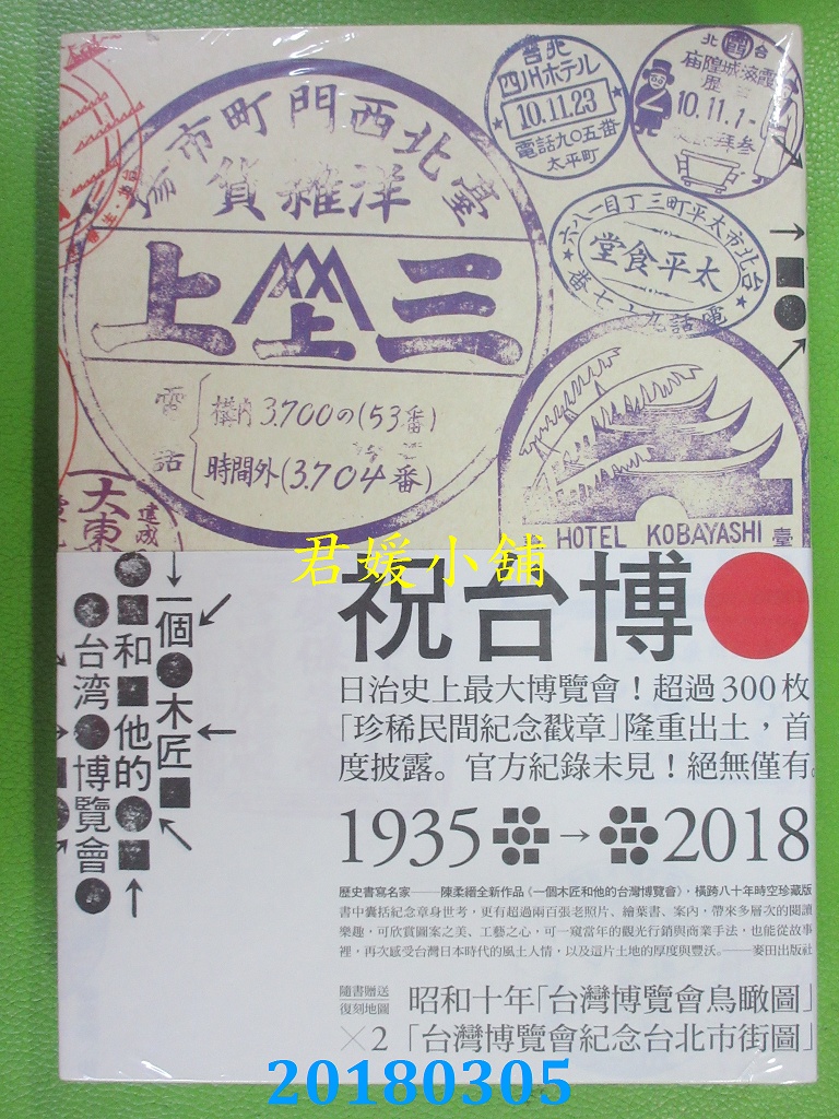 本店刊登的圖片都是第一時間出版日當天所拍,讀者若要首刷書,請在出刊時就來購買!!日久或售完就無庫存,要請書商補書,書商沒有幫忙挑首刷書這樣的服務,都是按書名送來,故不保證有首刷!!除非商品標題有特別寫是首刷版,請不要以非首刷或與圖片不同,來退貨退款,恕不受理!!購買前請張大眼睛看清楚,或旺旺詢問客服,以避免日後糾紛!!謝謝!! 【內容簡介】 一個木匠和他的台灣博覽會(附1935年『台灣博覽會紀念台北市街圖』、『台灣博覽會鳥瞰圖』復刻版古地圖 書重 510克