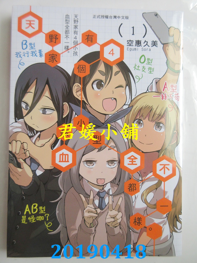 空运版 长鸿 天野家有4个小孩血型全都不一样。 1 (全新)
