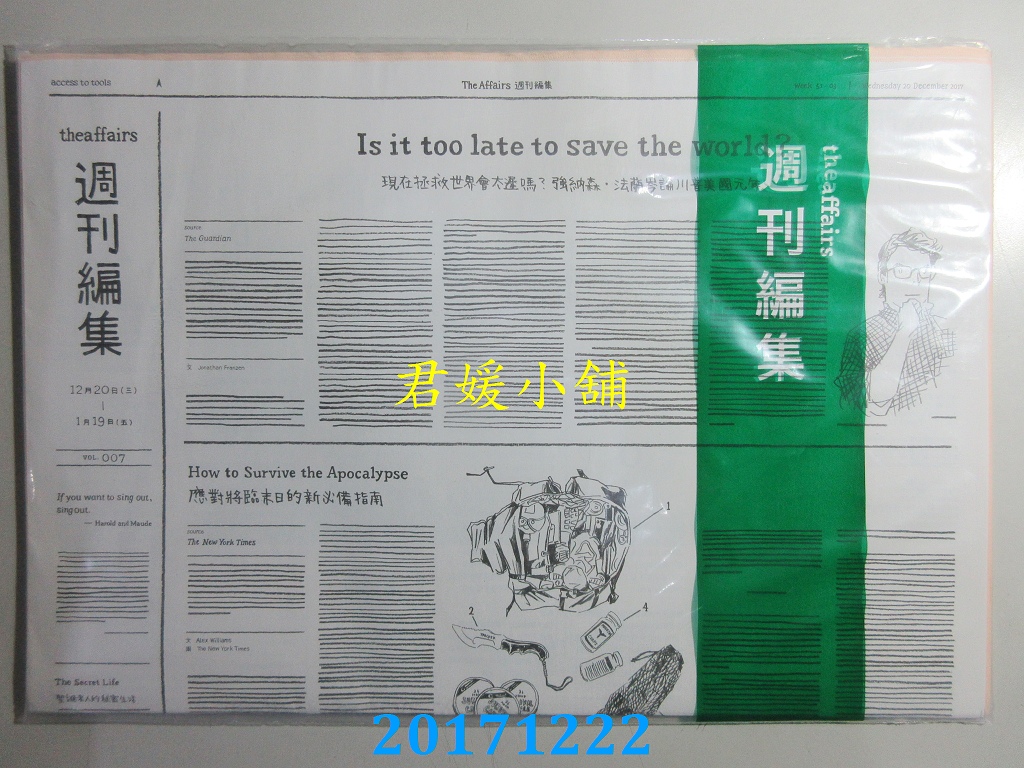 【內容簡介】 The Affairs 周刊编集 2017/12/20 第7期 書重 220 公克