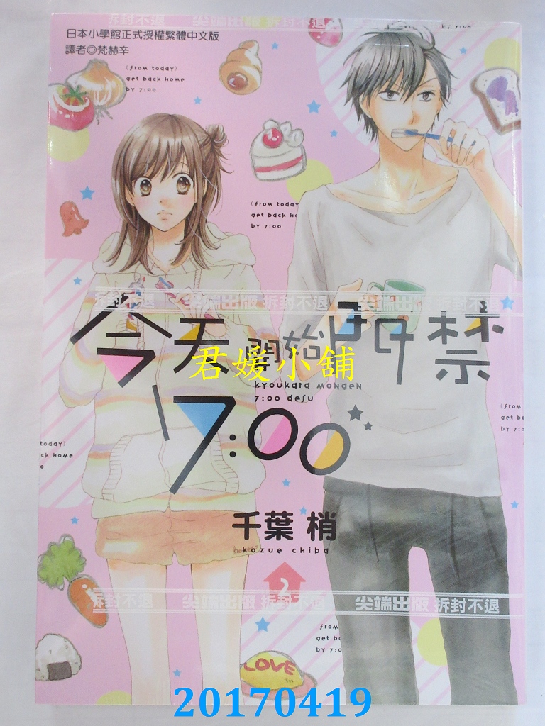 本店刊登的圖片都是第一時間出版日當天所拍,讀者若要首刷書,請在出刊時就來購買!!日久或售完就無庫存,要請書商補書,書商沒有幫忙挑首刷書這樣的服務,都是按書名送來,故不保證有首刷!!除非商品標題有特別寫是首刷版,請不要以非首刷或與圖片不同,來退貨退款,恕不受理!!購買前請張大眼睛看清楚,或旺旺詢問客服,以避免日後糾紛!!謝謝!! 【內容簡介】 今天開始門禁7:00(1)作者: 千葉梢 譯者:梵赫辛出版社:尖端 出版日期:2017/04/18語言:繁體中文 書重 190 公克