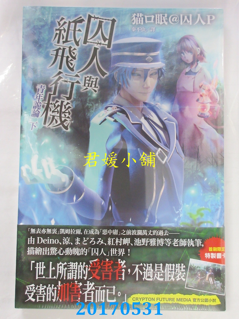本店刊登的圖片都是第一時間出版日當天所拍,讀者若要首刷書,請在出刊時就來購買!!日久或售完就無庫存,要請書商補書,書商沒有幫忙挑首刷書這樣的服務,都是按書名送來,故不保證有首刷!!除非商品標題有特別寫是首刷版,請不要以非首刷或與圖片不同,來退貨退款,恕不受理!!購買前請張大眼睛看清楚,或旺旺詢問客服,以避免日後糾紛!!謝謝!! 【內容簡介】 囚人與紙飛行機 青年詭論 下作者: 猫ロ眠@囚人P 譯者:秦不虫出版社:台灣東販出版日期:2017/05/31語言:繁體中文