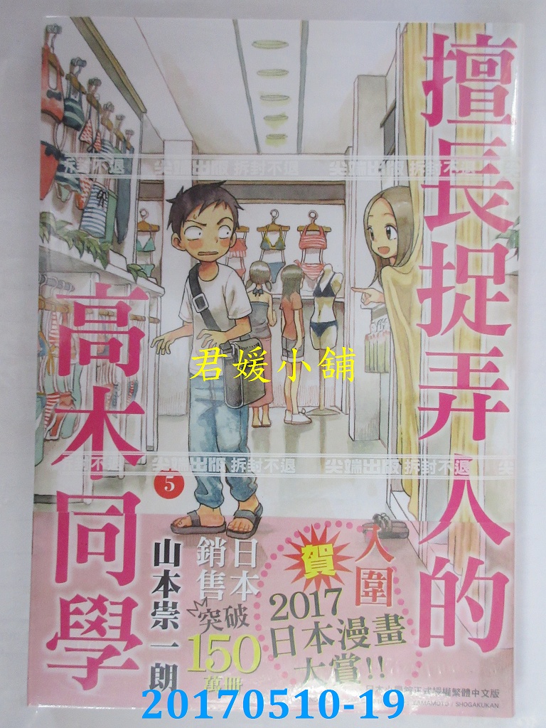 本店刊登的圖片都是第一時間出版日當天所拍,讀者若要首刷書,請在出刊時就來購買!!日久或售完就無庫存,要請書商補書,書商沒有幫忙挑首刷書這樣的服務,都是按書名送來,故不保證有首刷!!除非商品標題有特別寫是首刷版,請不要以非首刷或與圖片不同,來退貨退款,恕不受理!!購買前請張大眼睛看清楚,或旺旺詢問客服,以避免日後糾紛!!謝謝!! 【內容簡介】 擅長捉弄人的高木同學(05)作者: 山本崇一朗譯者:泪紫音出版社:尖端出版日期:2017/05/10語言:繁體中文 書重 160 公克