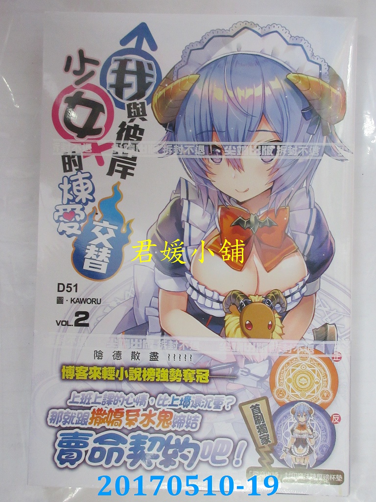 本店刊登的圖片都是第一時間出版日當天所拍,讀者若要首刷書,請在出刊時就來購買!!日久或售完就無庫存,要請書商補書,書商沒有幫忙挑首刷書這樣的服務,都是按書名送來,故不保證有首刷!!除非商品標題有特別寫是首刷版,請不要以非首刷或與圖片不同,來退貨退款,恕不受理!!購買前請張大眼睛看清楚,或旺旺詢問客服,以避免日後糾紛!!謝謝!! 【內容簡介】 我與彼岸少女的煉愛交替(02)作者: D51繪者:KAWORU出版社:尖端出版日期:2017/05/11語言:繁體中文 書重 280 公克