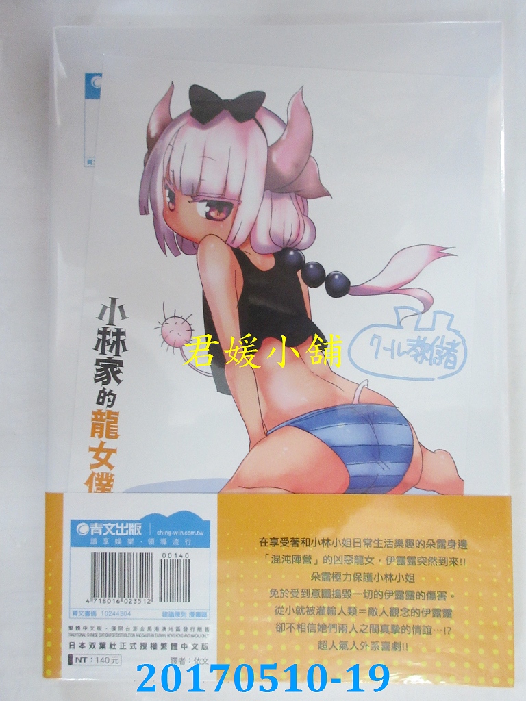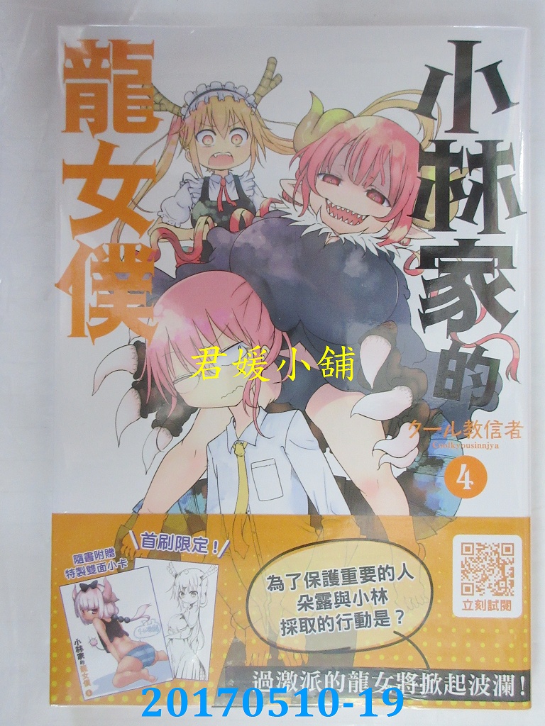 本店刊登的圖片都是第一時間出版日當天所拍,讀者若要首刷書,請在出刊時就來購買!!日久或售完就無庫存,要請書商補書,書商沒有幫忙挑首刷書這樣的服務,都是按書名送來,故不保證有首刷!!除非商品標題有特別寫是首刷版,請不要以非首刷或與圖片不同,來退貨退款,恕不受理!!購買前請張大眼睛看清楚,或旺旺詢問客服,以避免日後糾紛!!謝謝!! 【內容簡介】 小林家的龍女僕(04)作者: クール教信者 譯者:依文出版社:青文出版日期:2017/05/18語言:繁體中文 書重 170 公克