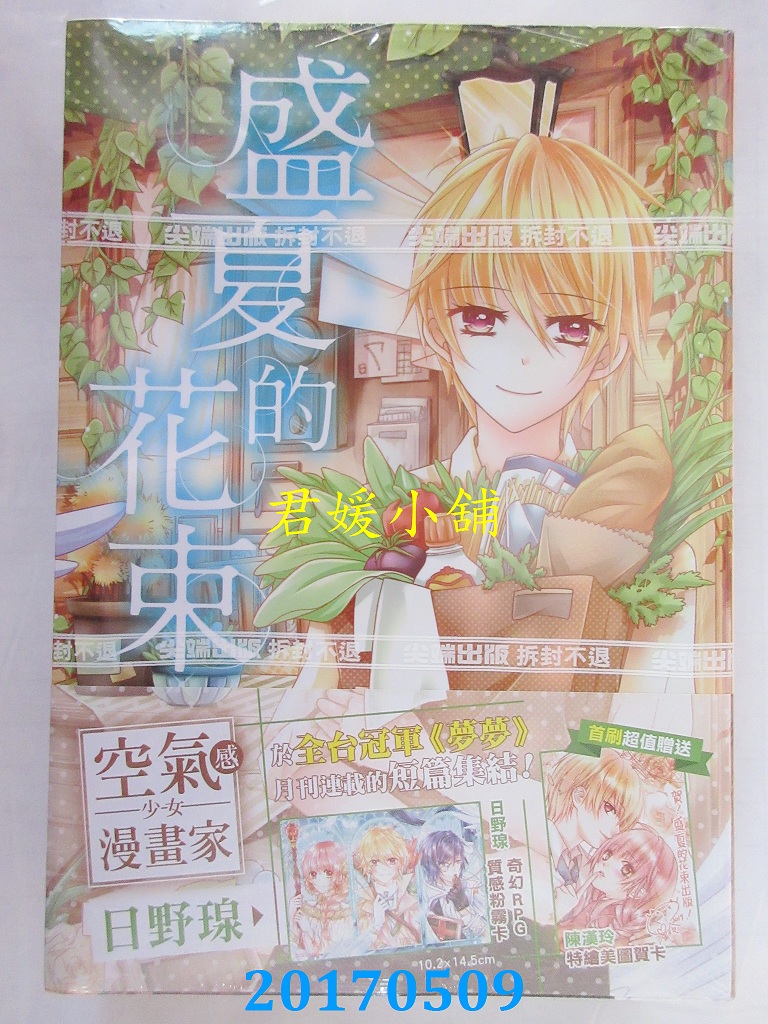 本店刊登的圖片都是第一時間出版日當天所拍,讀者若要首刷書,請在出刊時就來購買!!日久或售完就無庫存,要請書商補書,書商沒有幫忙挑首刷書這樣的服務,都是按書名送來,故不保證有首刷!!除非商品標題有特別寫是首刷版,請不要以非首刷或與圖片不同,來退貨退款,恕不受理!!購買前請張大眼睛看清楚,或旺旺詢問客服,以避免日後糾紛!!謝謝!! 【內容簡介】 盛夏的花束(全)作者: 日野瑔出版社:尖端出版日期:2017/05/09語言:繁體中文 書重 190 公克