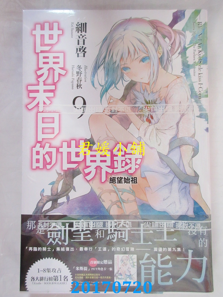 本店刊登的圖片都是第一時間出版日當天所拍,讀者若要首刷書,請在出刊時就來購買!!日久或售完就無庫存,要請書商補書,書商沒有幫忙挑首刷書這樣的服務,都是按書名送來,故不保證有首刷!!除非商品標題有特別寫是首刷版,請不要以非首刷或與圖片不同,來退貨退款,恕不受理!!購買前請張大眼睛看清楚,或旺旺詢問客服,以避免日後糾紛!!謝謝!! 【內容簡介】 世界末日的世界錄(09) 作者: 細音啟譯者:紅豆佳譯人出版社:尖端出版日期:2017/07/20語言:繁體中文 書重 350 公克