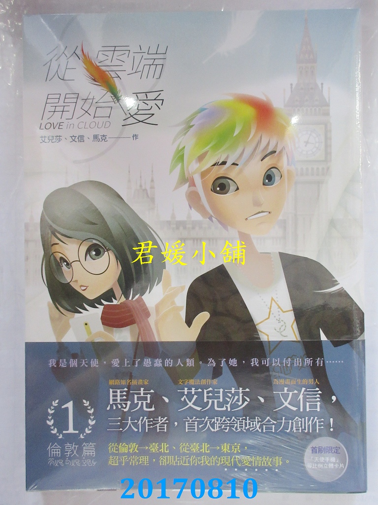本店刊登的圖片都是第一時間出版日當天所拍,讀者若要首刷書,請在出刊時就來購買!!日久或售完就無庫存,要請書商補書,書商沒有幫忙挑首刷書這樣的服務,都是按書名送來,故不保證有首刷!!除非商品標題有特別寫是首刷版,請不要以非首刷或與圖片不同,來退貨退款,恕不受理!!購買前請張大眼睛看清楚,或旺旺詢問客服,以避免日後糾紛!!謝謝!! 【內容簡介】 從雲端開始愛 第一集:倫敦篇作者: 艾兒莎, 文信, 馬克出版社:原動力文化出版日期:2017/08/10語言:繁體中文