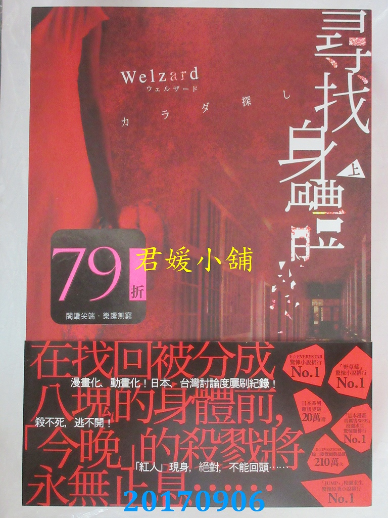 本店刊登的圖片都是第一時間出版日當天所拍,讀者若要首刷書,請在出刊時就來購買!!日久或售完就無庫存,要請書商補書,書商沒有幫忙挑首刷書這樣的服務,都是按書名送來,故不保證有首刷!!除非商品標題有特別寫是首刷版,請不要以非首刷或與圖片不同,來退貨退款,恕不受理!!購買前請張大眼睛看清楚,或旺旺詢問客服,以避免日後糾紛!!謝謝!! 【內容簡介】 尋找身體(下)作者: Welzard原文作者:ウェルザード譯者:王美娟出版社:尖端 出版日期:2017/09/06語言:繁體中文