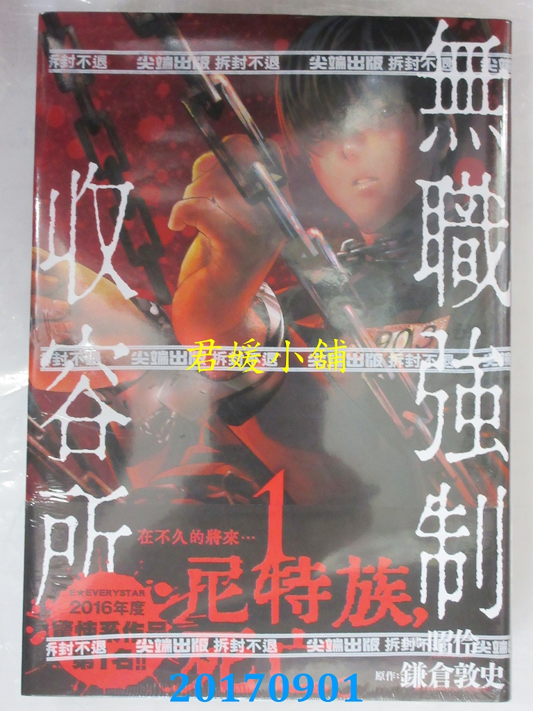 本店刊登的圖片都是第一時間出版日當天所拍,讀者若要首刷書,請在出刊時就來購買!!日久或售完就無庫存,要請書商補書,書商沒有幫忙挑首刷書這樣的服務,都是按書名送來,故不保證有首刷!!除非商品標題有特別寫是首刷版,請不要以非首刷或與圖片不同,來退貨退款,恕不受理!!購買前請張大眼睛看清楚,或旺旺詢問客服,以避免日後糾紛!!謝謝!! 【內容簡介】 無職強制收容所(1)作者: 鐮倉敦史, 昭伶譯者:柯冠廷出版社:尖端出版日期:2017/09/01語言:繁體中文 書重 190 公克