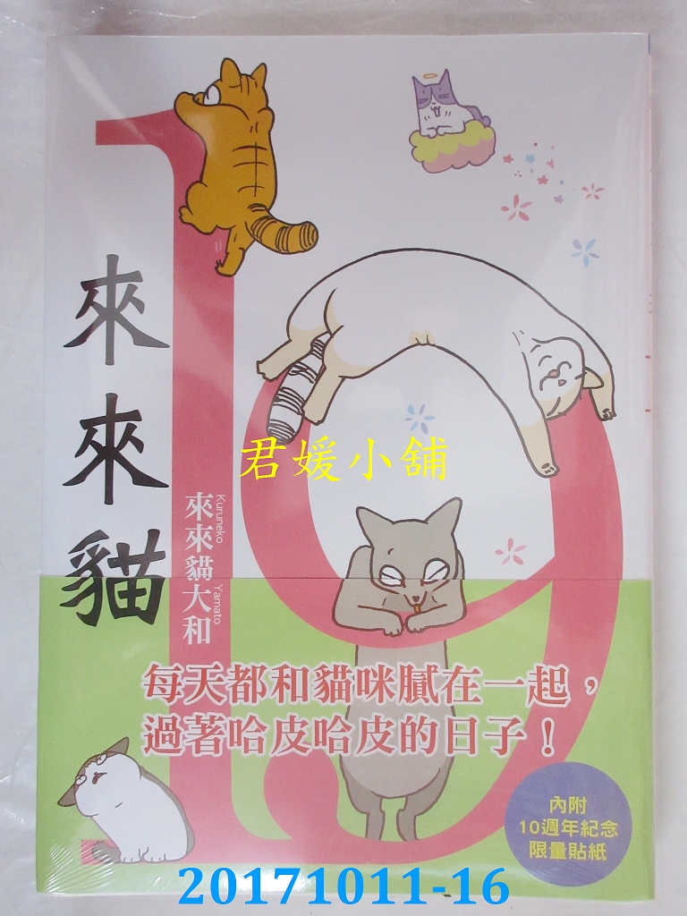 本店刊登的圖片都是第一時間出版日當天所拍,讀者若要首刷書,請在出刊時就來購買!!日久或售完就無庫存,要請書商補書,書商沒有幫忙挑首刷書這樣的服務,都是按書名送來,故不保證有首刷!!除非商品標題有特別寫是首刷版,請不要以非首刷或與圖片不同,來退貨退款,恕不受理!!購買前請張大眼睛看清楚,或旺旺詢問客服,以避免日後糾紛!!謝謝!! 【內容簡介】 來來貓(19)作者: くるねこ大和譯者: 鄒百蕙出版社:青文 出版日期:2017/10/16語言:繁體中文 書重 320 公克