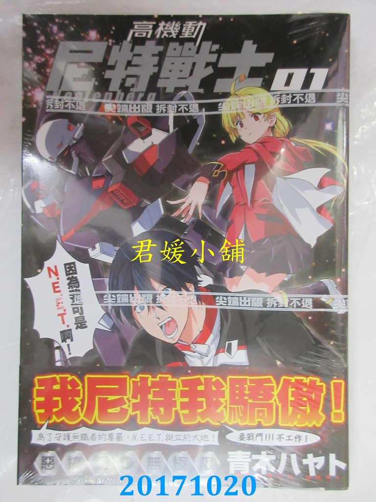 本店刊登的圖片都是第一時間出版日當天所拍,讀者若要首刷書,請在出刊時就來購買!!日久或售完就無庫存,要請書商補書,書商沒有幫忙挑首刷書這樣的服務,都是按書名送來,故不保證有首刷!!除非商品標題有特別寫是首刷版,請不要以非首刷或與圖片不同,來退貨退款,恕不受理!!購買前請張大眼睛看清楚,或旺旺詢問客服,以避免日後糾紛!!謝謝!! 【內容簡介】 高機動尼特戰士(1)作者: 青木ハヤト譯者: 泪紫音出版社:尖端出版日期:2017/10/20語言:繁體中文 書重 200 公克