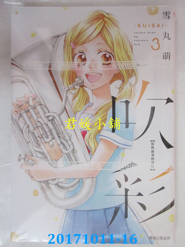 本店刊登的圖片都是第一時間出版日當天所拍,讀者若要首刷書,請在出刊時就來購買!!日久或售完就無庫存,要請書商補書,書商沒有幫忙挑首刷書這樣的服務,都是按書名送來,故不保證有首刷!!除非商品標題有特別寫是首刷版,請不要以非首刷或與圖片不同,來退貨退款,恕不受理!!購買前請張大眼睛看清楚,或旺旺詢問客服,以避免日後糾紛!!謝謝!! 【內容簡介】 吹彩 你所演奏的音色(03)作者: 雪丸萌譯者: 蔡孟婷出版社:尖端出版日期:2017/10/13語言:繁體中文 書重 180 公克