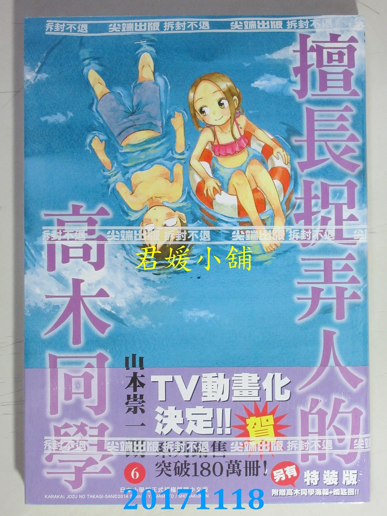 本店刊登的圖片都是第一時間出版日當天所拍,讀者若要首刷書,請在出刊時就來購買!!日久或售完就無庫存,要請書商補書,書商沒有幫忙挑首刷書這樣的服務,都是按書名送來,故不保證有首刷!!除非商品標題有特別寫是首刷版,請不要以非首刷或與圖片不同,來退貨退款,恕不受理!!購買前請張大眼睛看清楚,或旺旺詢問客服,以避免日後糾紛!!謝謝!! 【內容簡介】 擅長捉弄人的高木同學(06) 作者: 山本崇一朗譯者: 泪紫音出版社:尖端出版日期:2017/11/20語言:繁體中文 書重 170 公克