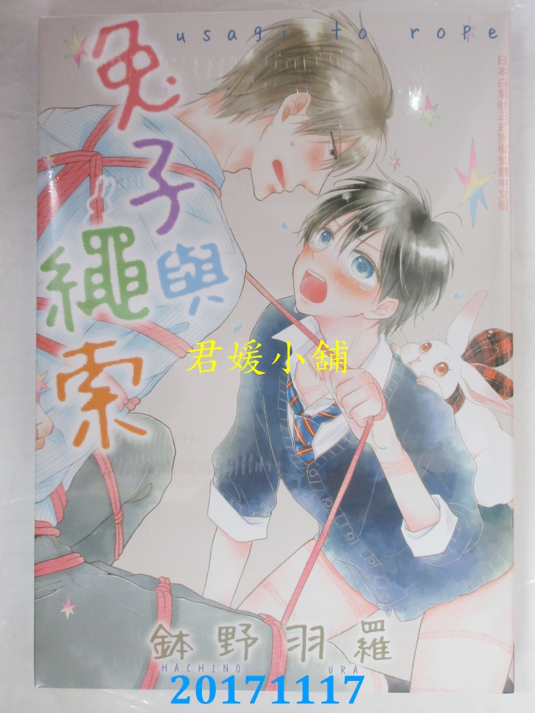 本店刊登的圖片都是第一時間出版日當天所拍,讀者若要首刷書,請在出刊時就來購買!!日久或售完就無庫存,要請書商補書,書商沒有幫忙挑首刷書這樣的服務,都是按書名送來,故不保證有首刷!!除非商品標題有特別寫是首刷版,請不要以非首刷或與圖片不同,來退貨退款,恕不受理!!購買前請張大眼睛看清楚,或旺旺詢問客服,以避免日後糾紛!!謝謝!! 【內容簡介】 兔子與繩索 全 作者: 鉢野羽羅譯者: Akane出版社:長鴻出版社出版日期:2017/11/17語言:繁體中文 書重 200 公克