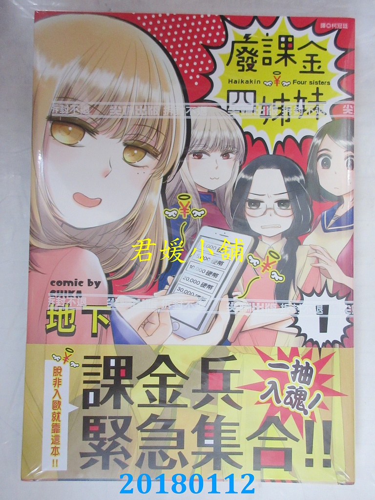 本店刊登的圖片都是第一時間出版日當天所拍,讀者若要首刷書,請在出刊時就來購買!!日久或售完就無庫存,要請書商補書,書商沒有幫忙挑首刷書這樣的服務,都是按書名送來,故不保證有首刷!!除非商品標題有特別寫是首刷版,請不要以非首刷或與圖片不同,來退貨退款,恕不受理!!購買前請張大眼睛看清楚,或旺旺詢問客服,以避免日後糾紛!!謝謝!! 【內容簡介】 廢課金四姊妹(1)作者: 地下譯者: 柯冠廷出版社:尖端 出版日期:2018/01/12語言:繁體中文
