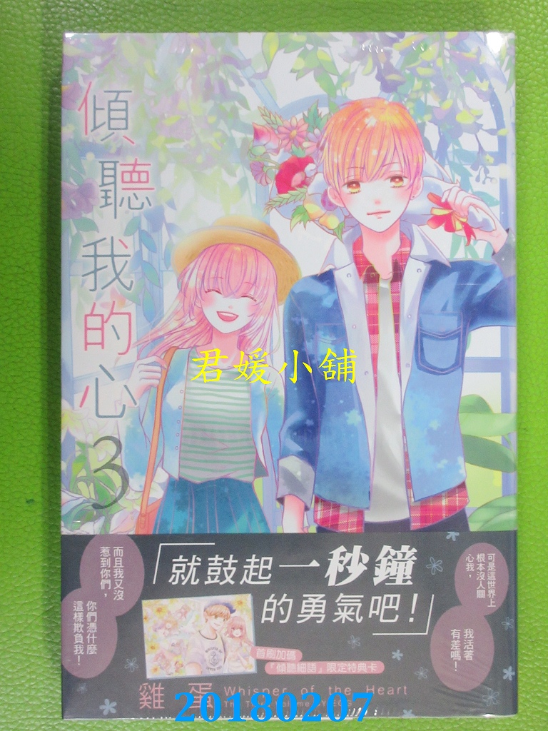 本店刊登的圖片都是第一時間出版日當天所拍,讀者若要首刷書,請在出刊時就來購買!!日久或售完就無庫存,要請書商補書,書商沒有幫忙挑首刷書這樣的服務,都是按書名送來,故不保證有首刷!!除非商品標題有特別寫是首刷版,請不要以非首刷或與圖片不同,來退貨退款,恕不受理!!購買前請張大眼睛看清楚,或旺旺詢問客服,以避免日後糾紛!!謝謝!! 【內容簡介】 傾聽我的心 3完作者: 雞蛋出版社:長鴻出版社 出版日期:2018/02/07語言:繁體中文書重 180 公克