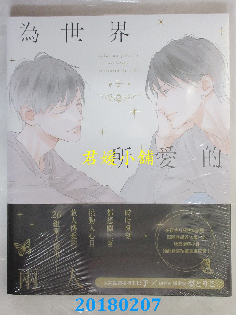 本店刊登的圖片都是第一時間出版日當天所拍,讀者若要首刷書,請在出刊時就來購買!!日久或售完就無庫存,要請書商補書,書商沒有幫忙挑首刷書這樣的服務,都是按書名送來,故不保證有首刷!!除非商品標題有特別寫是首刷版,請不要以非首刷或與圖片不同,來退貨退款,恕不受理!!購買前請張大眼睛看清楚,或旺旺詢問客服,以避免日後糾紛!!謝謝!! 【內容簡介】 為世界所愛的兩人 作者: e子譯者: 亞奇繪者: 梨とり出版社:台灣角川出版日期:2018/02/07語言:繁體中文