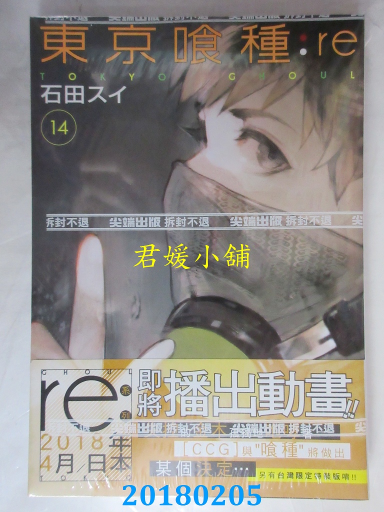 本店刊登的圖片都是第一時間出版日當天所拍,讀者若要首刷書,請在出刊時就來購買!!日久或售完就無庫存,要請書商補書,書商沒有幫忙挑首刷書這樣的服務,都是按書名送來,故不保證有首刷!!除非商品標題有特別寫是首刷版,請不要以非首刷或與圖片不同,來退貨退款,恕不受理!!購買前請張大眼睛看清楚,或旺旺詢問客服,以避免日後糾紛!!謝謝!! 【內容簡介】 東京喰種:re(14) 作者: 石田スイ譯者: 賴思宇出版社:尖端 出版日期:2018/02/05語言:繁體中文