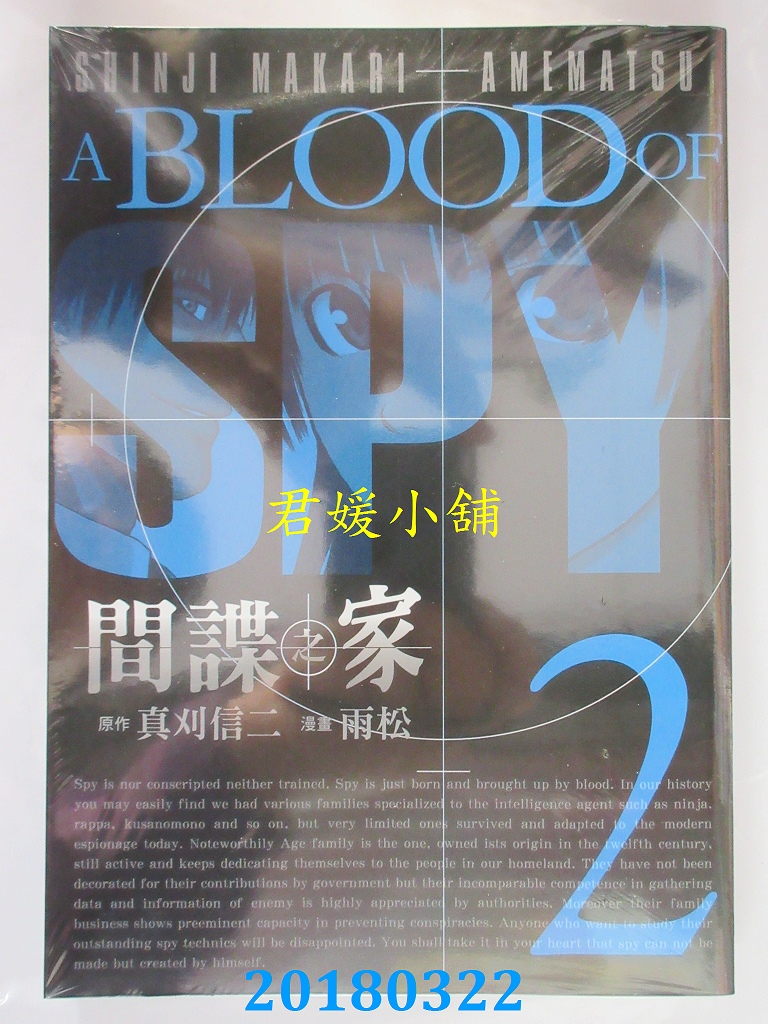 本店刊登的圖片都是第一時間出版日當天所拍,讀者若要首刷書,請在出刊時就來購買!!日久或售完就無庫存,要請書商補書,書商沒有幫忙挑首刷書這樣的服務,都是按書名送來,故不保證有首刷!!除非商品標題有特別寫是首刷版,請不要以非首刷或與圖片不同,來退貨退款,恕不受理!!購買前請張大眼睛看清楚,或旺旺詢問客服,以避免日後糾紛!!謝謝!! 【內容簡介】 間諜之家 2 作者: 雨松, 真刈信二出版社:台灣東販 出版日期:2018/03/22語言:繁體中文書重 210 公克