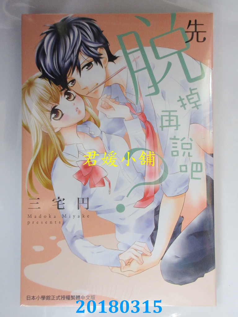 本店刊登的圖片都是第一時間出版日當天所拍,讀者若要首刷書,請在出刊時就來購買!!日久或售完就無庫存,要請書商補書,書商沒有幫忙挑首刷書這樣的服務,都是按書名送來,故不保證有首刷!!除非商品標題有特別寫是首刷版,請不要以非首刷或與圖片不同,來退貨退款,恕不受理!!購買前請張大眼睛看清楚,或旺旺詢問客服,以避免日後糾紛!!謝謝!! 【內容簡介】 先脫掉再說吧? 全 作者: 三宅円譯者: NANA出版社:長鴻出版社出版日期:2018/03/15語言:繁體中文書重 170 公克