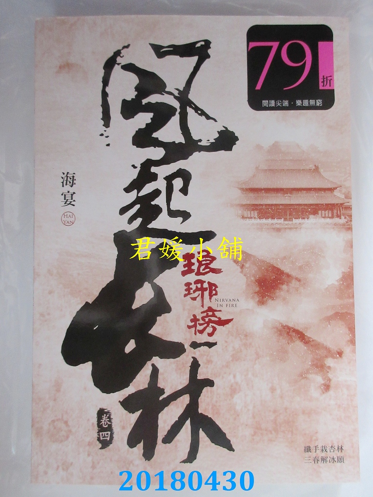 本店刊登的圖片都是第一時間出版日當天所拍,讀者若要首刷書,請在出刊時就來購買!!日久或售完就無庫存,要請書商補書,書商沒有幫忙挑首刷書這樣的服務,都是按書名送來,故不保證有首刷!!除非商品標題有特別寫是首刷版,請不要以非首刷或與圖片不同,來退貨退款,恕不受理!!購買前請張大眼睛看清楚,或旺旺詢問客服,以避免日後糾紛!!謝謝!! 【內容簡介】 琅琊榜之風起長林(四) 書重預估 500 公克