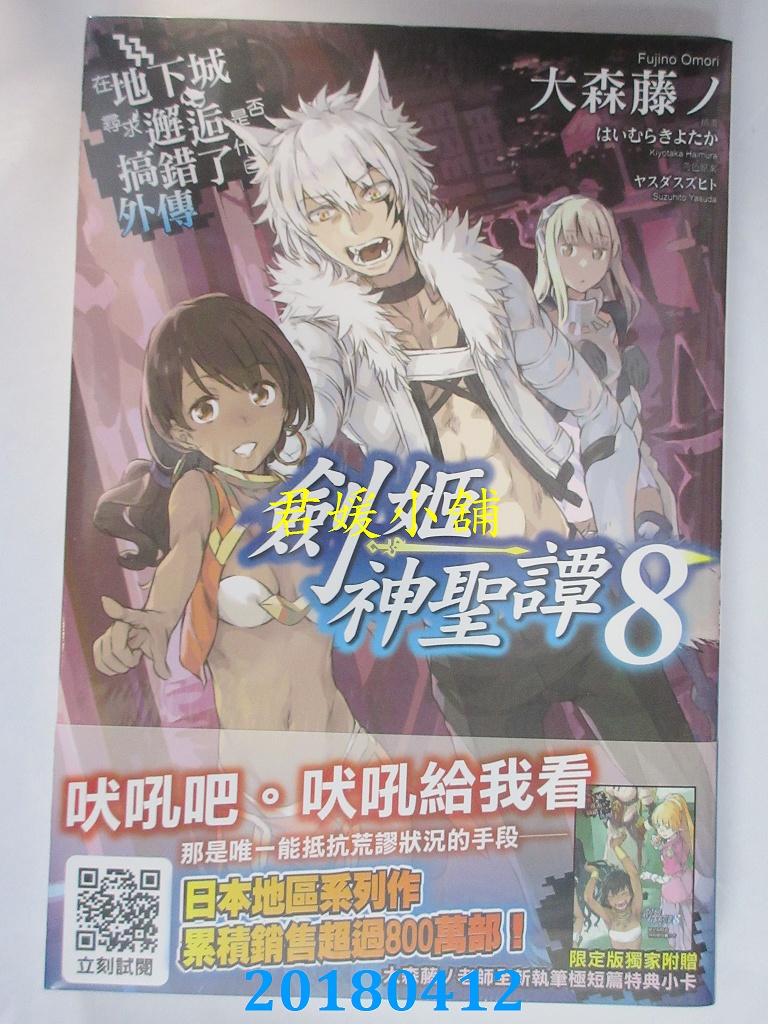 本店刊登的圖片都是第一時間出版日當天所拍,讀者若要首刷書,請在出刊時就來購買!!日久或售完就無庫存,要請書商補書,書商沒有幫忙挑首刷書這樣的服務,都是按書名送來,故不保證有首刷!!除非商品標題有特別寫是首刷版,請不要以非首刷或與圖片不同,來退貨退款,恕不受理!!購買前請張大眼睛看清楚,或旺旺詢問客服,以避免日後糾紛!!謝謝!! 【內容簡介】 在地下城尋求邂逅是否搞錯了什麼(外傳)劍姬神聖譚08(限定版) 書重 320 公克