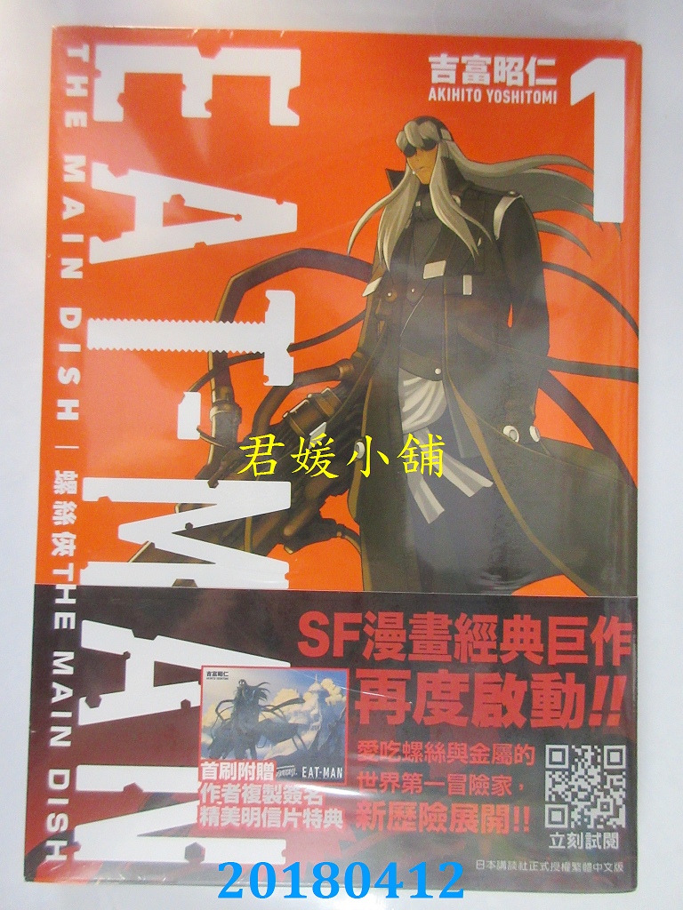 本店刊登的圖片都是第一時間出版日當天所拍,讀者若要首刷書,請在出刊時就來購買!!日久或售完就無庫存,要請書商補書,書商沒有幫忙挑首刷書這樣的服務,都是按書名送來,故不保證有首刷!!除非商品標題有特別寫是首刷版,請不要以非首刷或與圖片不同,來退貨退款,恕不受理!!購買前請張大眼睛看清楚,或旺旺詢問客服,以避免日後糾紛!!謝謝!! 【內容簡介】 螺絲俠EAT-MAN MAIN DISH(01) 書重 220 公克