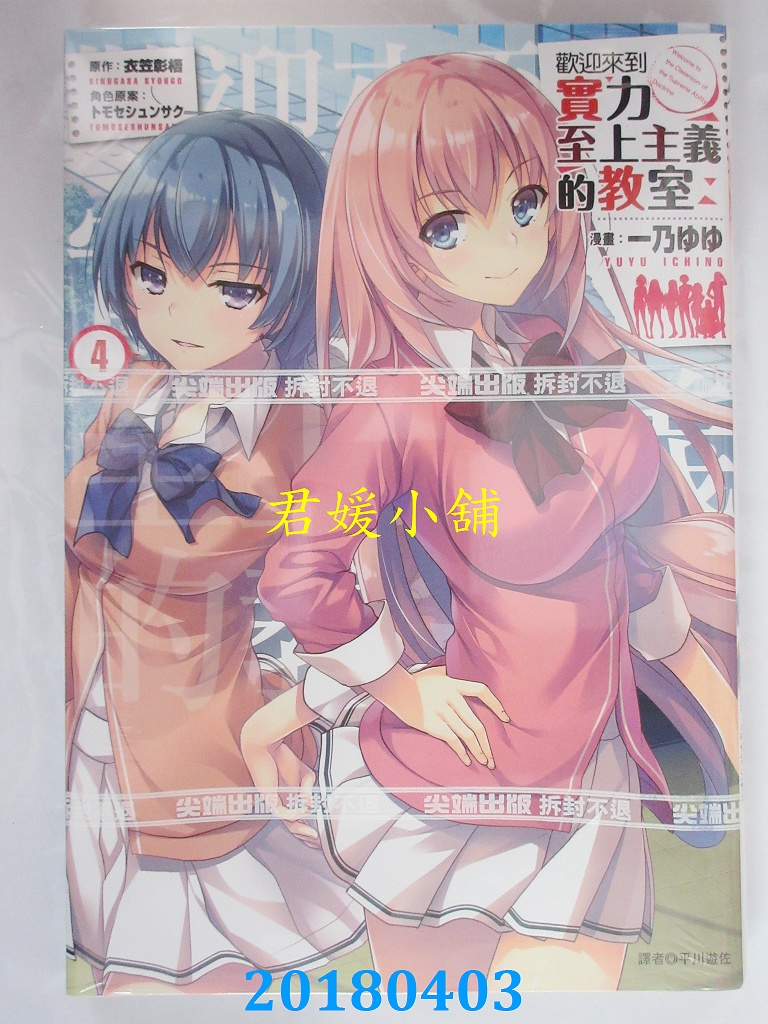 本店刊登的圖片都是第一時間出版日當天所拍,讀者若要首刷書,請在出刊時就來購買!!日久或售完就無庫存,要請書商補書,書商沒有幫忙挑首刷書這樣的服務,都是按書名送來,故不保證有首刷!!除非商品標題有特別寫是首刷版,請不要以非首刷或與圖片不同,來退貨退款,恕不受理!!購買前請張大眼睛看清楚,或旺旺詢問客服,以避免日後糾紛!!謝謝!! 【內容簡介】 歡迎來到實力至上主義的教室(4) 書重預估 200 公克